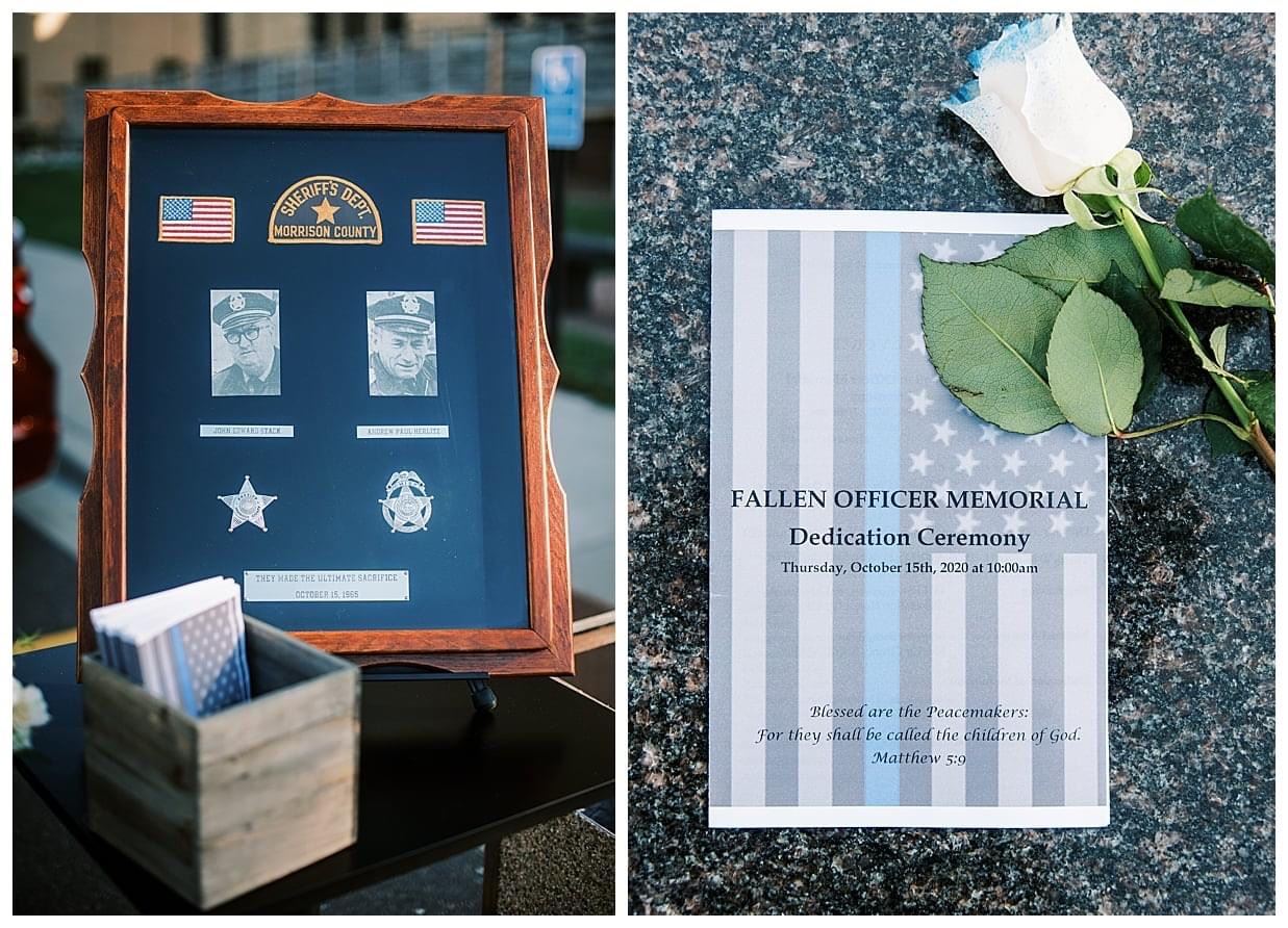 55 years ago Morrison County Sheriff John Stack and Chief Deputy Andrew Herlitz were ambushed and killed in the line of duty. October 15th, 2020 Morrison County paid tribute to the Fallen Officers with a Dedication Memorial Service unveiling a monument. This Fallen Officer Memorial will be a place to visit, remember, reflect and pay tribute to honor these men who paid the ultimate sacrifice. We promise to forever remember and honor their memory as they will never be forgotten. We pay tribute to the families who mourn their loved ones daily. A name spoken, is a name remembered. The Morrison County Sheriff’s Office is thankful for the communities support, in regards to the Fallen Officer Memorial. The Stack and Herlitz families will forever be part of our law enforcement family. Pictures and a link to the video from the service are below: